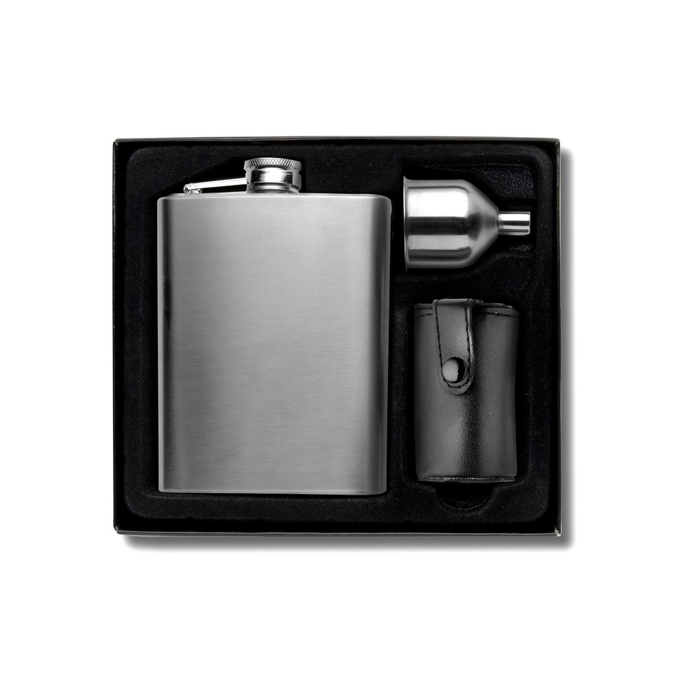Stärken Sie Ihre Marke mit unserem exklusiven Flachmann-Set, das nicht nur funktional ist, sondern auch als stilvoller Imageträger dient. Mit seinen kompakten Maßen von 17 x 18 x 4,5 cm und dem eleganten Edelstahl-Finish bietet er eine hochwertige Präsentation, die bei Kunden und Geschäftspartnern für positiven Wiedererkennung sorgt. Der Flachmann mit 220 ml und vier praktischen 30 ml Trinkbechern wird zum idealen Begleiter bei Veranstaltungen, Outdoor-Aktivitäten oder einfach im Alltag.