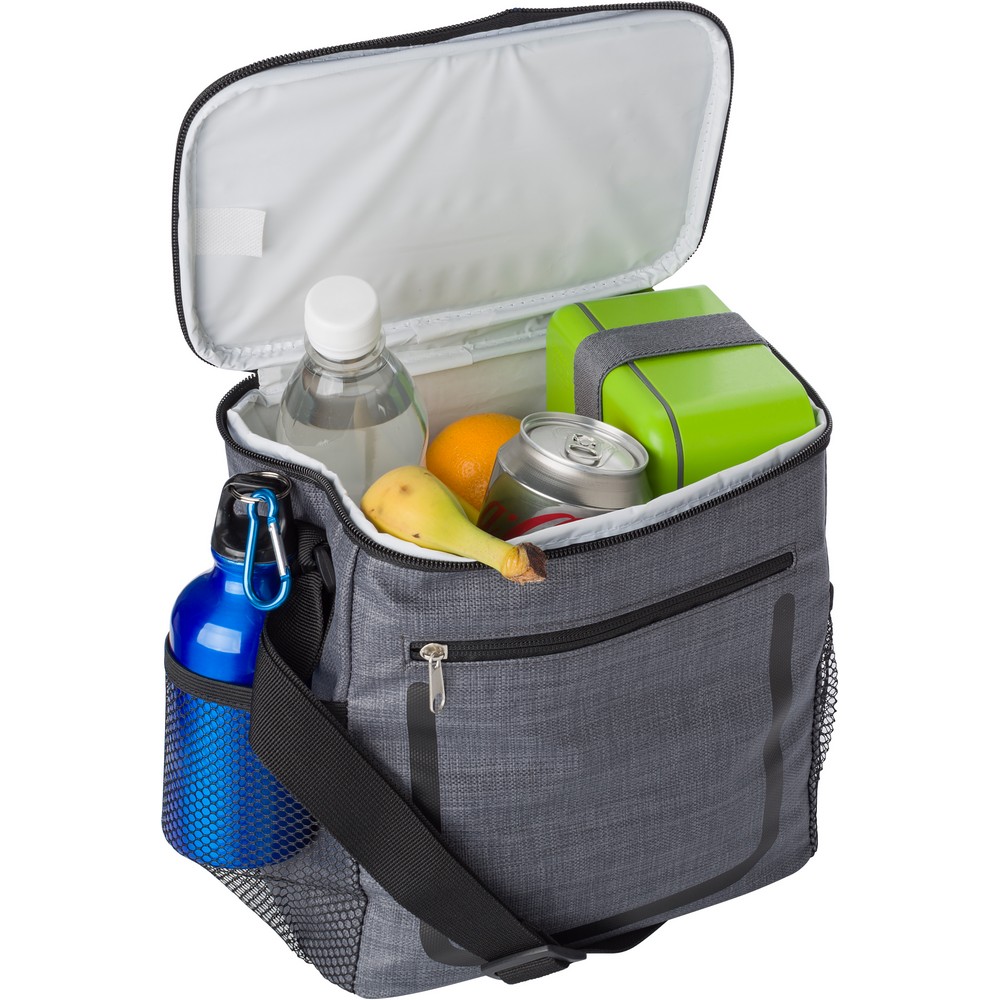 Entdecken Sie die hochwertige Kühltasche (25 x 16 x 24 cm), die nicht nur funktional ist, sondern auch als perfekter Imageträger für Ihr Unternehmen fungiert. Mit einem eleganten grauen Design und robustem Polyester bietet sie eine optimale Kombination aus Stil und Langlebigkeit. Die Kühltasche verfügt über eine praktische Fronttasche mit Reißverschluss sowie zwei seitliche Netzfächer, ideal für zusätzliche Utensilien. Der verstellbare Schultergurt sorgt für Tragekomfort, ob beim Kunden-Event oder im Alltag.