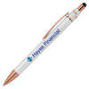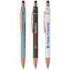 Der Kugelschreiber „Orion Spin“ mit Stylus ist eine perfekte Mischung aus Tradition und Innovation. Mit einem versenkbaren Aluminiumschaft und einer drehbaren Halterung mit roségoldenen Pfeilen, die durch einen einfachen Daumendruck aktiviert wird, bietet er ein einzigartiges Schreiberlebnis. Die luxuriöse Gummilackierung und die roségoldene Verzierung verleihen ihm Eleganz. Mit dem schwarzen Stift können Sie nahtlos zwischen Papier und digitalen Schnittstellen wechseln. Der sich drehende Teil, der mit roségoldenen Pfeilen verziert ist, erhöht sowohl den visuellen Reiz als auch das taktile Erlebnis.