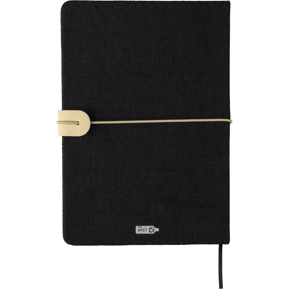 Entdecken Sie unser erstklassiges A5-Notizbuch, das nicht nur optisch glänzt, sondern auch als perfekter Imageträger für Ihre Marke fungiert. Mit 80 linierte Seiten aus hochwertigem 70 g/m² Papier, einem stilvollen PU-Ecover in attraktiven Farben und einem praktischen Verschlussband ist dieses Notizbuch der ideale Begleiter im Alltag Ihrer Kunden. Der integrierte Lesezeichenribbon ermöglicht eine schnelle Orientierung und schafft einen direkten Bezug zur Marke. Hergestellt aus umweltfreundlichem RPET und mit einem Recycling-Symbol versehen, unterstreicht es Ihr Engagement für Nachhaltigkeit.