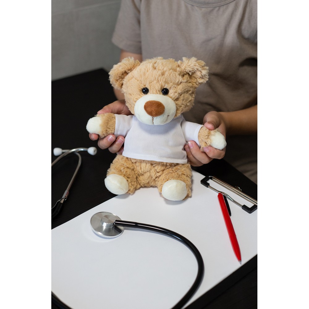 Erwecken Sie Ihre Marke zum Leben mit unserem 18 cm großen Plüsch-Teddybär, der nicht nur eine kuschelige Umarmung bietet, sondern auch als kraftvoller Imageträger fungiert. Der aus hochwertigem Plüsch und Polyester gefertigte Bär lässt sich problemlos mit Ihrem Logo bedrucken und zeigt damit Ihre Unternehmensidentität auf ansprechende Weise. Seine neutral beige Farbe passt hervorragend in jedes Ambiente und spricht eine breite Zielgruppe an.