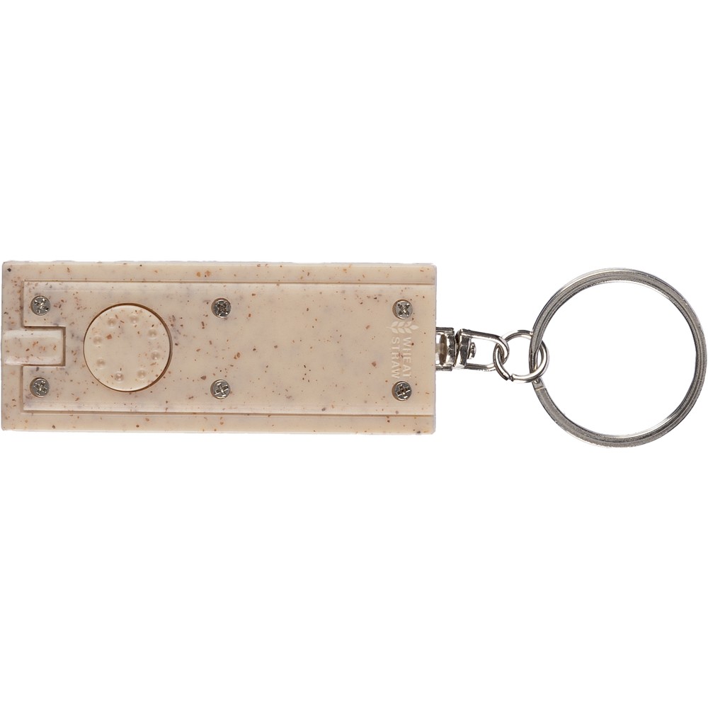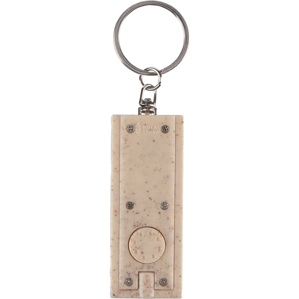 Entdecken Sie den Schlüsselanhänger mit LED Licht, der nicht nur als funktionales Accessoire dient, sondern auch Ihre Marke zum Strahlen bringt. Mit einem zeitlosen, braunen Design aus nachhaltigem Weizenstroh, ABS und Edelstahl, ist er der ideale Imageträger für Ihr Unternehmen. Bei einem Gewicht von nur 12 g und kompakten Maßen von 6 x 2,4 x 2,9 cm passt er perfekt in jede Tasche.