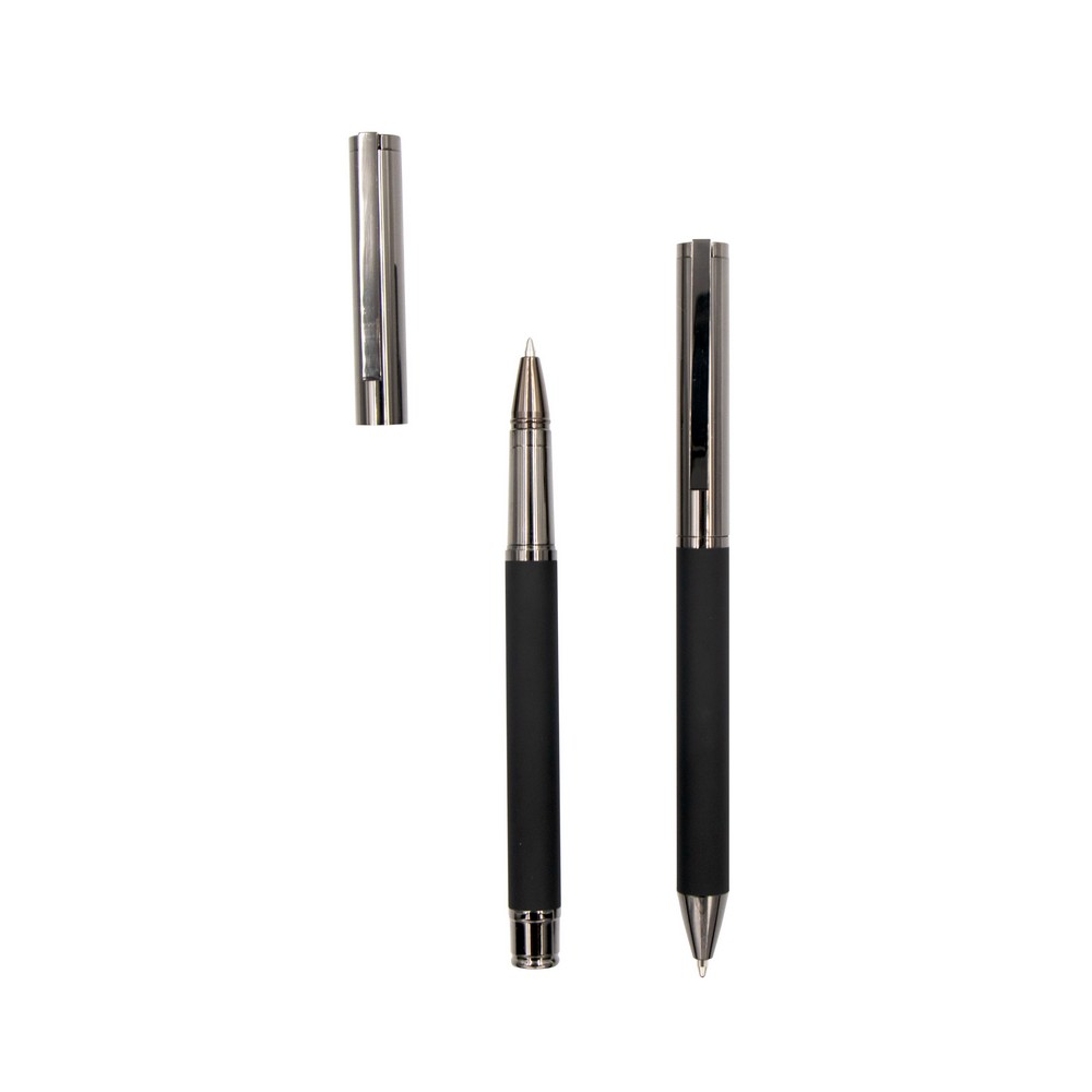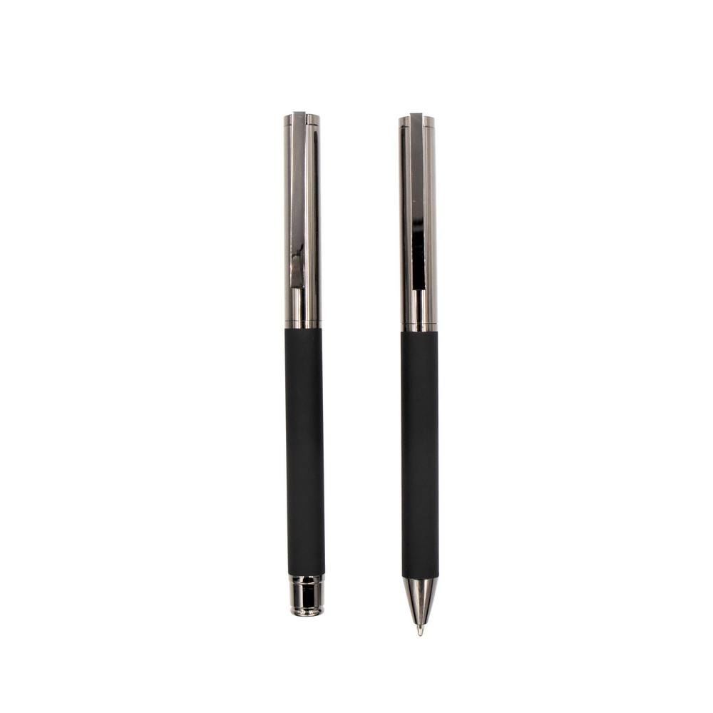 Erleben Sie mit unserem Schreibset Metall das perfekte Werbemittel für Ihr Unternehmen. Elegantes Design mit einem schwarzen Gehäuse und glänzenden Akzenten macht dieses Set zu einem stilvollen Begleiter. Durch die individuellen Brandingmöglichkeiten – Lasergravur, Tampondruck oder Siebdruck – wird Ihre Marke zum Blickfang und bleibt in bester Erinnerung.