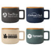 Entdecken Sie die Genua – 355 ml Keramiktasse mit Bambus-Deckel, die eleganten Stil mit praktischer Funktionalität kombiniert. Diese Tasse besticht durch ihre matte Außenseite und glänzende Innenseite, die ihr ein hochwertiges Aussehen und angenehmes Gefühl verleihen – veredelt mit Siebdruck. Der bequeme Griff und das großzügige Fassungsvermögen von 355 ml machen sie sowohl für heiße als auch kalte Getränke ideal. Sie ist mikrowellengeeignet (ohne Deckel) und somit perfekt für den täglichen Gebrauch, ob zu Hause oder im Büro.