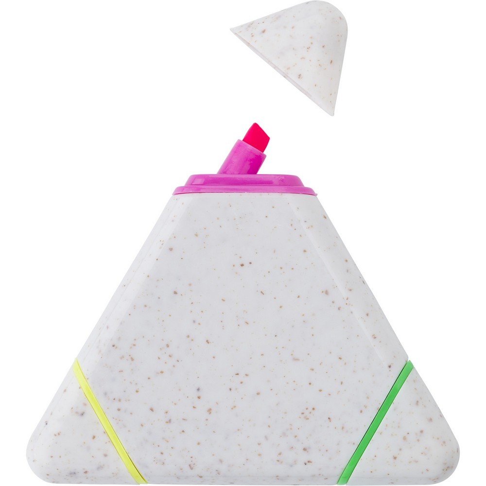 Der dreieckige Textmarker aus PP mit individuellem Branding ist der ideale Imageträger für Ihr Unternehmen. Mit einer kompakten Größe von 9 x 7,8 x 1,2 cm und einem Gewicht von nur 23 g ist er nicht nur handlich, sondern auch praktisch – perfekt für Meetings, Schulungen oder Events. Die leuchtenden Farben Pink, Grün und Gelb machen Ihre Marke zum Hingucker, während das umweltfreundliche Material aus PP und Weizenstroh Nachhaltigkeit kommuniziert.