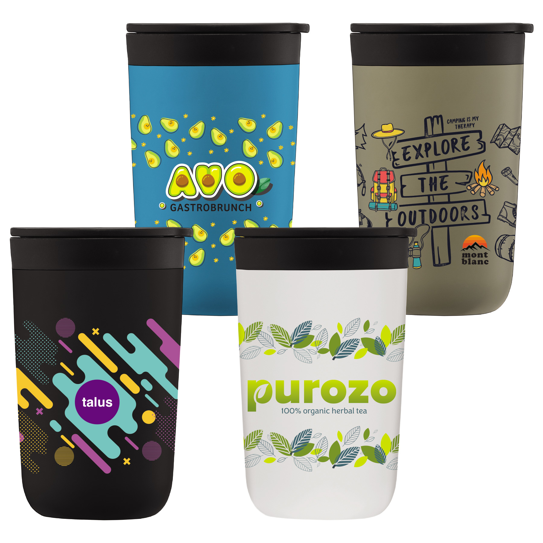 Ein echter Hingucker! Der doppelwandige „Avalon“ Edelstahlbecher (415 ml), auch bekannt unter dem Namen „Sienna Becher“ überzeugt nicht nur durch sein markantes Design, sondern auch durch seine nachhaltige Herstellung aus innovativen recycelten Materialien – ein aktiver Beitrag zur Müllreduktion. Dank der Luftisolierung ist der Becher besonders robust und bruchsicher. Mit einem individuellen Branding wird er zum echten Blickfang. Firmenlogos kommen auf diesem funktionalen Werbeartikel optimal zur Geltung – perfekt geeignet als Giveaway für Sportevents, Messen, Konferenzen und vieles mehr! Nur für Handwäsche geeignet. Lieferung erfolgt in einer stilvollen Geschenkbox.